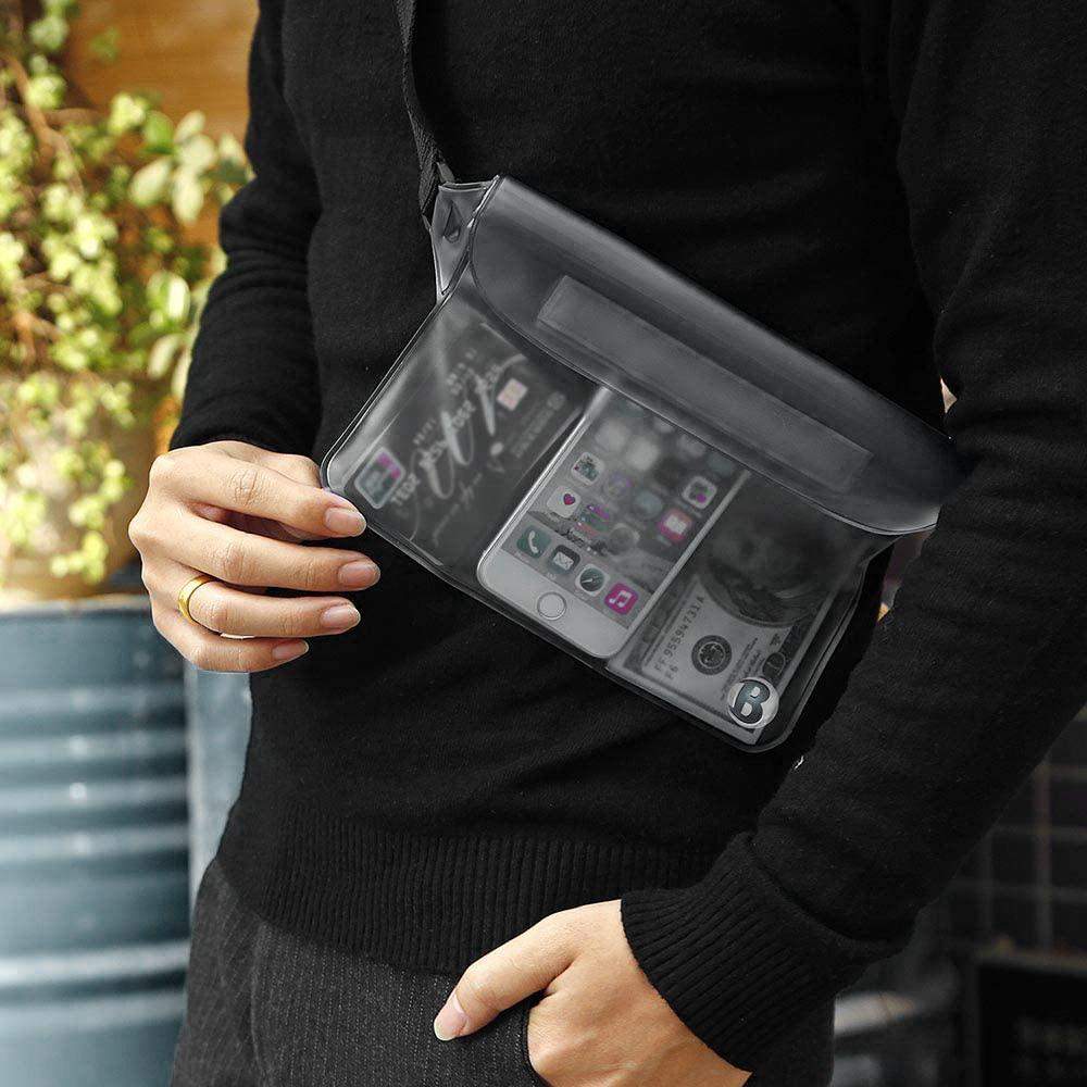 Når du skal på eventyr, er det en god idé at opbevare din mobiltelefon, kamera og andre ejendele i en vandtæt taske. Denne skulderstroptaske er dog ikke kun vandafvisende – den kan tåle at blive helt nedsænket i vand! Tasken er lavet af robust PVC-materiale i 3 lag og giver dine ejendele sikker beskyttelse mod vand, sand og snavs.